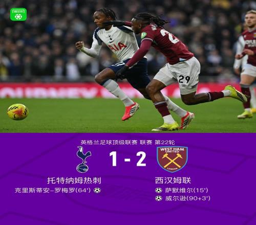 剑南春丨热刺12遭西汉姆联补时绝杀,威尔逊打入制胜球