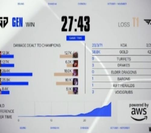 英文流直播间公布GENvsT1历史交手战绩:世界赛大场12