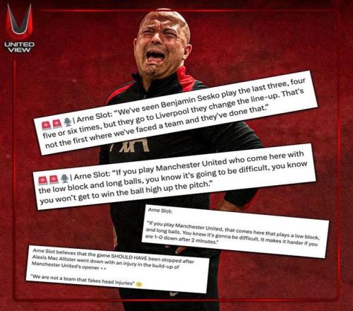 曼联2-1击败利物浦的英超双红会已经过去数日,但利物浦主帅斯洛特仍不服输。他对第一粒丢球前麦卡利斯特头部受伤倒地裁判却没有吹停比赛耿耿于怀,并强调他的球队绝对不会诈伤寻求受益。