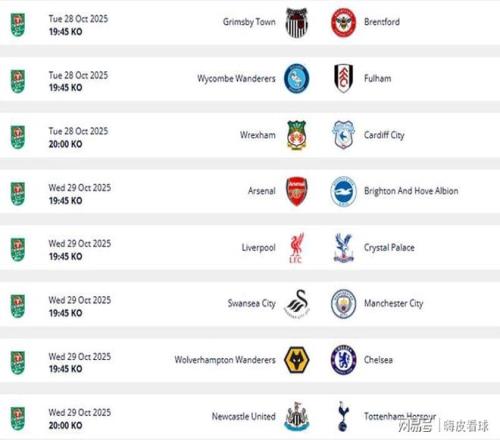 联赛杯16强阶段,只有一场比赛没有英超球队参与,英冠的雷克瑟姆主场迎战英甲的卡迪夫城。另外,富勒姆客场挑战英甲的韦康比流浪者,以及布伦特福德客场挑战英乙的格林斯比,两场均为英超中游球队的舞台。一路高歌猛进的格林斯比,还能不能继续神奇的表演,值得期待。