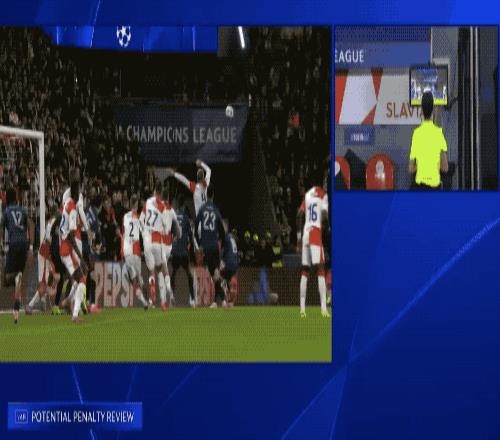 第29分钟,加布里埃尔头球攻门高出了球门,随后VAR介入判定普罗沃德手球在先,阿森纳获得点球。