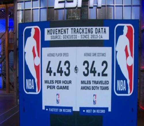 此外,节目中还晒出了人们普遍认为造成NBA球员伤病高发的主要因素的数据——NBA当今的快节奏比赛让很多球员过于疲惫。据统计,现在NBA球员每场比赛场均都要保持4.43英里/小时(约为7.13公里/小时)的速度进行比赛,同时每场比赛两支球队场均合计要有34.2英里的跑动距离(约为55.04公里)。这两项统计都创下了历史新高。