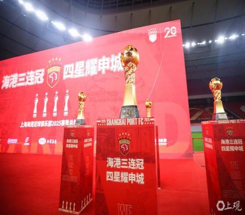 【动力图】上海海港队徽添第四颗星,实现中超三连冠