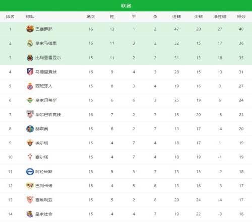 随着皇马02+西班牙人10!西甲最新积分榜:马竞掉队争四乱了
